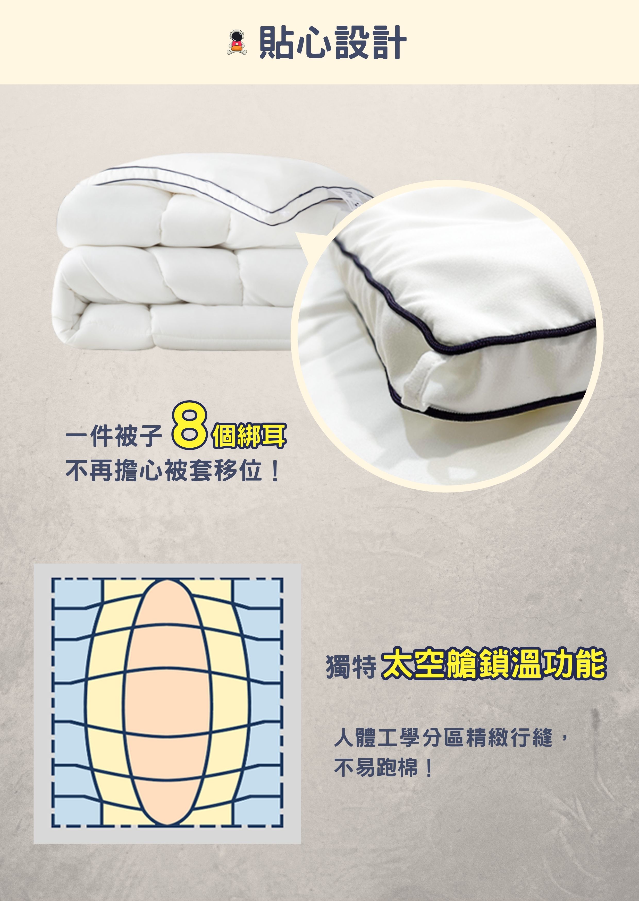 整件被子上共有8個綁耳,裝進被套中不再擔心移位~