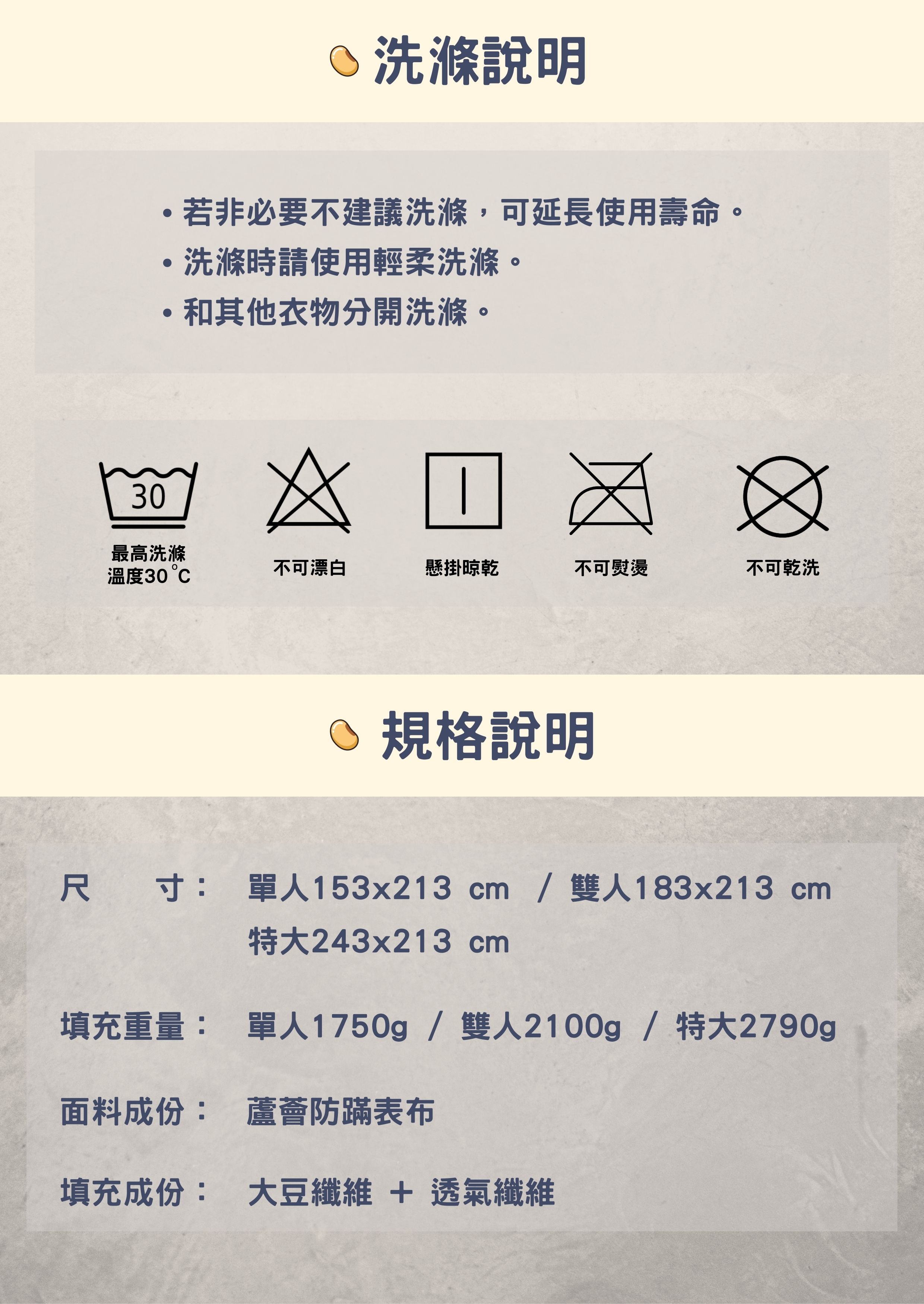 ➤採用蘆薈防蹣抗菌表布,加上親膚的磨毛處理,蓋起來更貼身柔軟