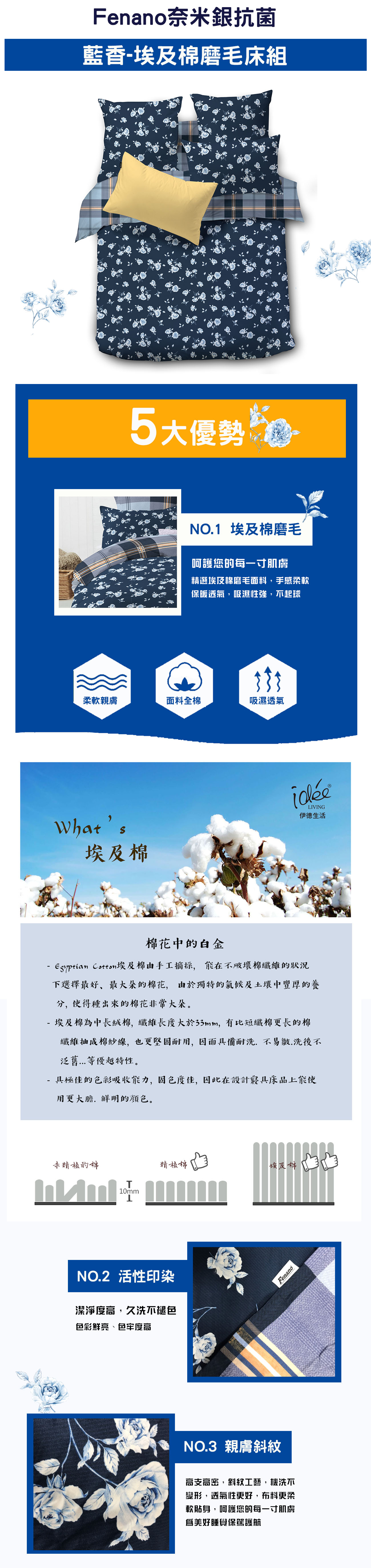 【床包被套組】Fenano芬納諾 奈米銀防蹣抗菌 長絨棉 雙人床包被套組 加大床包被套組 特大床包被套組_藍香_伊德生活